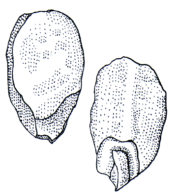 Glumes. Lower glume lanceolate or elliptic, membranous, without keels, 0 -nerved. Upper glume lanceolate or elliptic, 1.2–1.5 mm long, membranous, without keels, 1 -nerved.