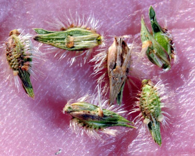 dorsally compressed, 3.9–5.3 mm long. Rhachilla internodes elongated between
