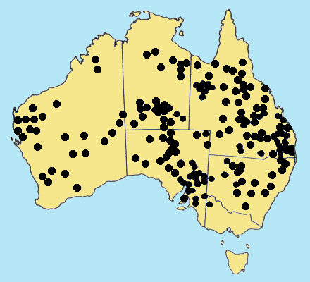 Widespread throughout the arid and semi-arid areas of mainland Australia, and