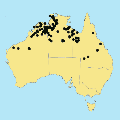 coastal islands N of lat. 21°S in the N.T., and in the Burke, Mitchell, Gregory