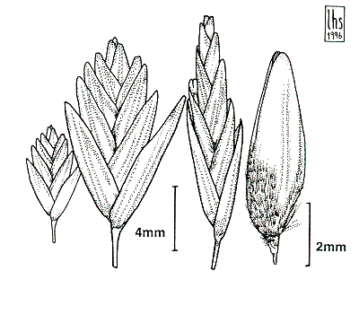 (principal) awn from a sinus. Lodicules present. Anthers 3. Grain 3 mm long.