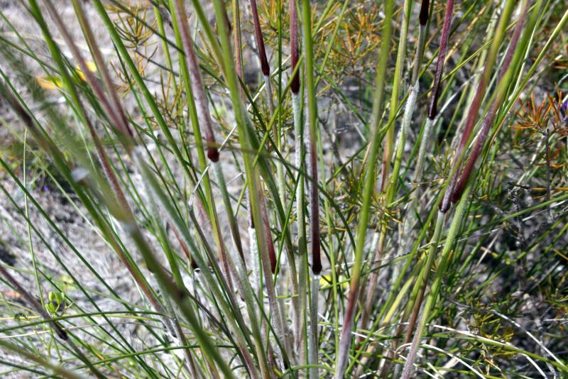 fringe of hairs. Leaf-blades recurved, curved or flexuous, aciculate,