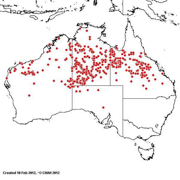Qld, also N.T., W.A. and far NW S.A. On a wide range of deep to skeletal, rocky