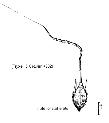 cluster. Companion spikelets represented by single glumes or rudimentary,