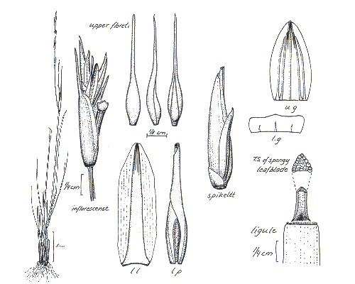 Diagnostic features include spikelet shape and the glabrous rachis.