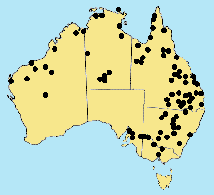 of 29°S, especially along the N coast of the N.T. Widespread and common in