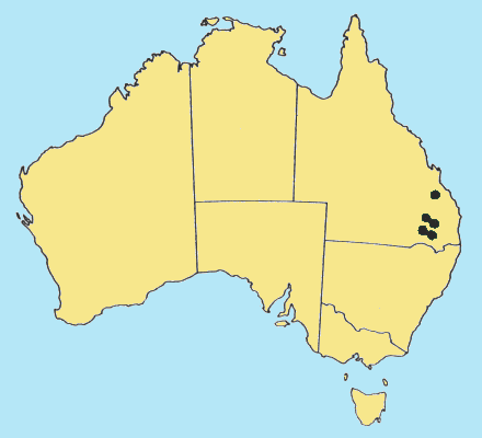 Endemic; Darling Downs District, Qld. In brigalow remnants.