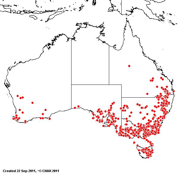 thoughout Australia except N.T.. Also in New Zealand.