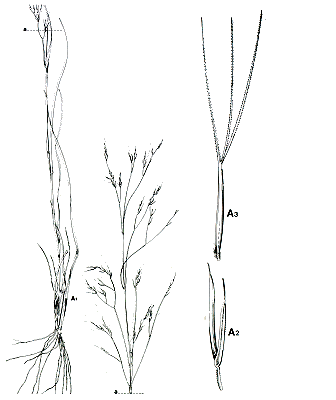 sparsely branched or branched. Ligule a fringe of hairs, 1 mm long. Leaf-blades