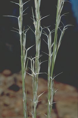 Median (principal) awn without a column. Lateral lemma awns present. Palea