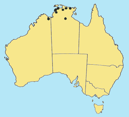 confined to the N of the N.T. within 350 km of Darwin, and NE W.A. near the
