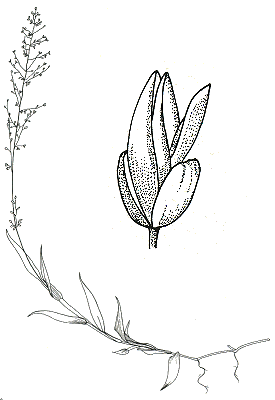Habit. Annual. Culms geniculately ascending or decumbent, stature slender to delicate, 5–20 cm tall. Mid-culm nodes pubescent. Ligule a fringe of hairs or absent. Leaf-blades lanceolate, 0.8–3 cm long, 2–5 mm wide. Leaf-blade surface scaberulous.
