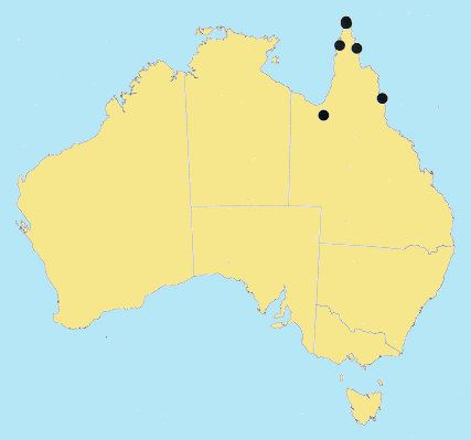 Known from savanna regions of northern Qld (uncommon) through New Guinea to the
