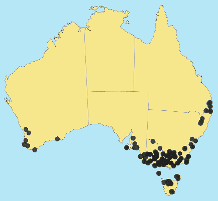 Australian Distribution: Western Australia, South Australia, Queensland, New South Wales, Victoria, Tasmania, Norfolk I, Lord Howe.