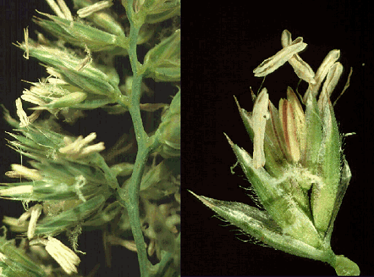 Glumes. Glumes dissimilar, thinner than fertile lemma. Lower glume lanceolate, membranous, keeled, 1-keeled, 1(–3) -nerved. Upper glume ovate, 3.2–7.2 mm long, membranous, keeled, 1-keeled, 1–3 -nerved.