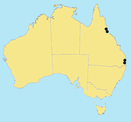 SE Qld, the areas where it was first introduced from Fiji. Flowers Apr.--May.