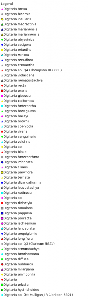 Taxonomic revisions, nomenclatural references:. J.Th.Henrard, Monograph genus Digitaria (1950): R.D.Webster, Brunonia 6: 131–216 (1984).