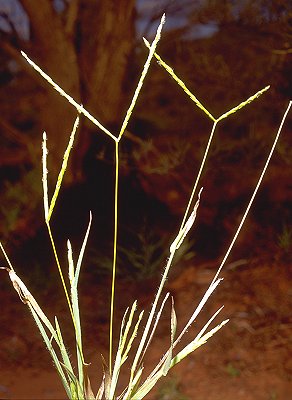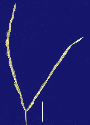 Inflorescence. Inflorescence digitate, with racemose branches. Racemes 2–3, spreading, 2.5–8.5 cm long, bearing 18–30 fertile spikelets on each.