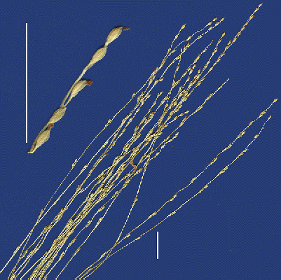 Inflorescence. Inflorescence subdigitate, with racemose branches. Racemes 10–20, ascending or spreading, 13–30 cm long, bearing 16–30 fertile spikelets on each. Central inflorescence axis 2.5–11 cm long.