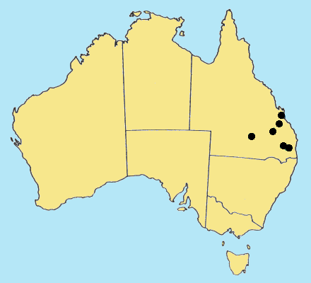 SE Qld, N to Yeppoon; throughout tropical and southern Africa, through Egypt, Iraq and India. Mostly on heavy clay soils, but also collected from black loamy soils and sandy soils.