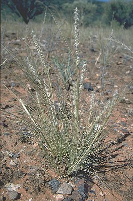 branched. Ligule a fringe of hairs. Leaf-blades involute, 1–2 mm wide.