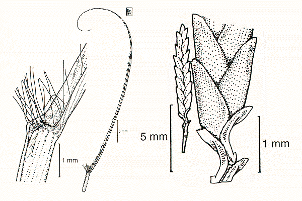 curly, with delicate hairs and thickened nerves; linear spikelets, with wavy