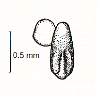strongly curved, shiny, stipitate caryopsis.