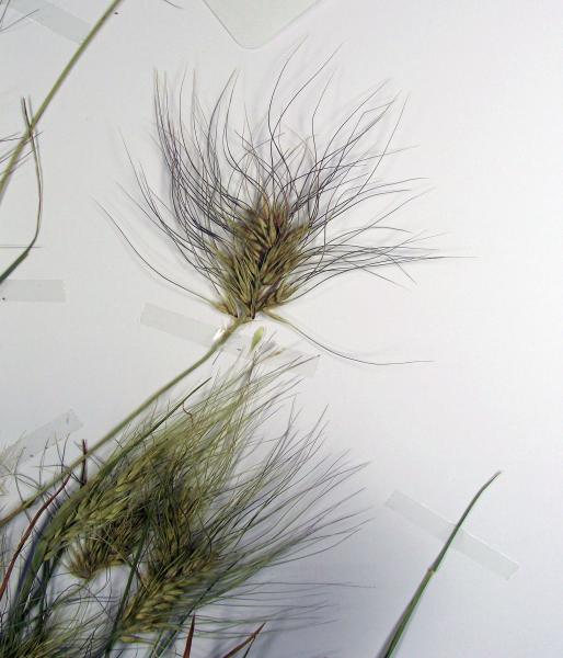 florets relative to the glumes, long-awned lemmas entirely obscured by hairs,