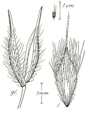 indumentum, beaked sometimes glabrous palea and thin shiny caryopsis. E.