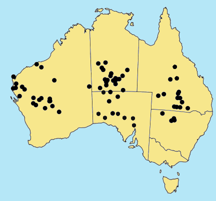 All mainland States except Victoria, predominantly in arid and semi-arid areas