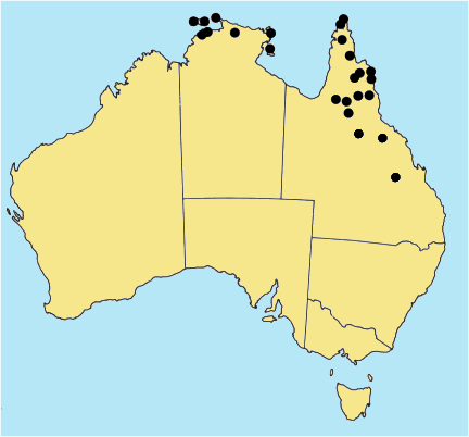 Qld N of 20ºS. and in N.T. on islands and coastal mainland. Usually on flat to