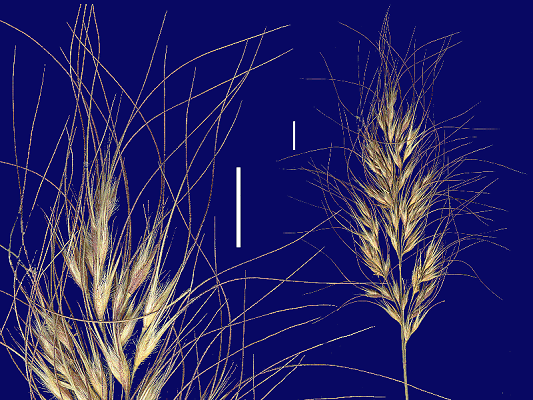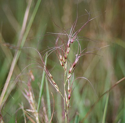 inverse glumes, two-awned paleas, and relatively long callus. The florets are