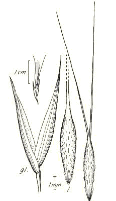and an acute relatively long hairy callus. The lemmas are cartilaginous with
