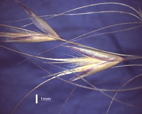 by its entirely hirsute florets and biaristate paleas.