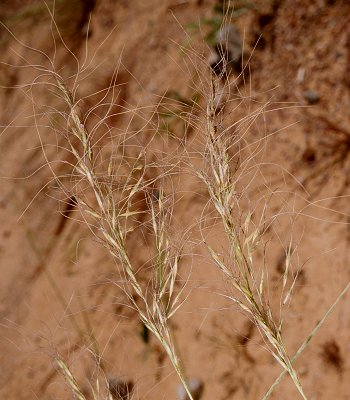 bearded nodes, tightly convolute vesicular blades, loose hairy panicle, firm