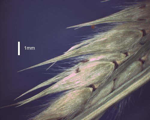 long, without keel. Lemma apex mucronate. Median (principal) awn 1.5 mm long