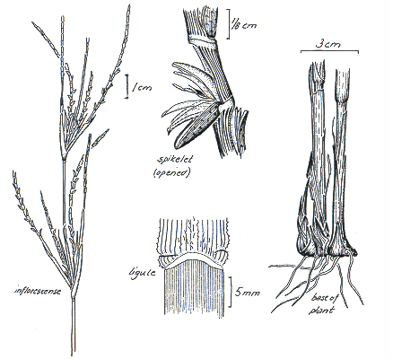 branches branched. Leaf-sheaths hairy. Ligule an eciliate membrane. Leaf-blades