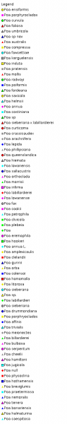 Notes. Poa is an extremely uniform genus for which there is no satisfactory infrageneric classification. Its taxonomy is rendered difficult by the dearth of useful discriminatory characters, and complicated by the widespread occurrence of apomixy and introgression. The genus differs from Festuca mainly in its keeled lemma and round hilum, but there is some overlap. Species with obsolescent marginal nerves may be confused with Eragrostis, though usually a few lemmas with more than 3 nerves can be found (Clayton and Renvoize, 1986).