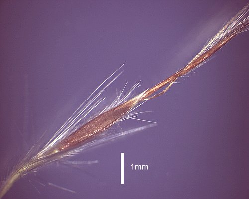 glume surface indumented. Upper glume apex awned. Florets. Basal sterile