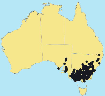in south-eastern Australia, from the Queensland border to Adelaide, altitude 300–1000