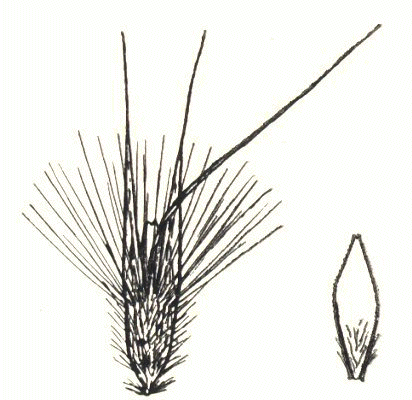long overall, with a twisted column. Lateral lemma awns present. Lodicules