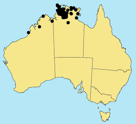 Confined to the Kimberley, W.A. and north-western N.T.