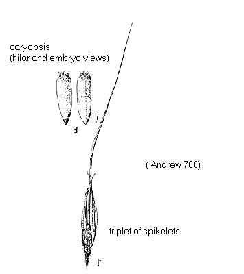 absent. Lodicules present. Anthers 3. Grain 4–6.3 mm long.