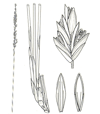 surface. Ligule a fringe of hairs, 0.5 mm long. Leaf-blades triangular to