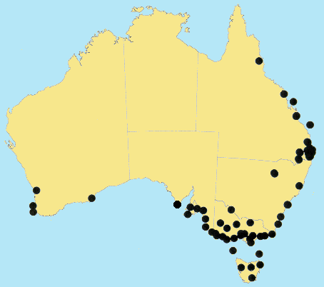 Australian Distribution: Western Australia, Northern Territory, South Australia, Queensland, New South Wales, Victoria, Tasmania, Norfolk I, Lord Howe.