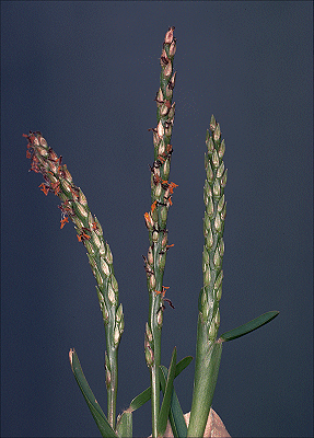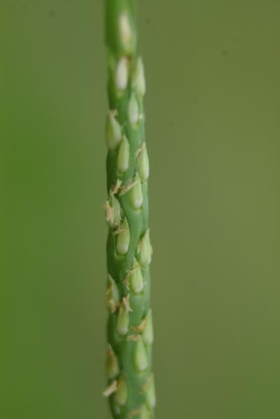 Inflorescence. Inflorescence solid, a raceme. Racemes sunken, 0.5–1 cm long, bearing 1–3 fertile spikelets on each. Central inflorescence axis 2–10 cm long.