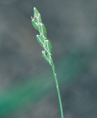 Glumes. Glumes similar, thinner than fertile lemma. Lower glume ovate, membranous, without keels or keeled, 3–5 -nerved. Upper glume ovate, 1–1.7 mm long, membranous, without keels, 5 -nerved. Florets. Basal sterile florets 2 or more, barren, without significant palea. Lemma of lower sterile floret 50 % of length of spikelet, chartaceous, 1-keeled, 5 -nerved, muticous or mucronate. Lemma of upper sterile floret 3–4.7 mm long, muticous or mucronate.