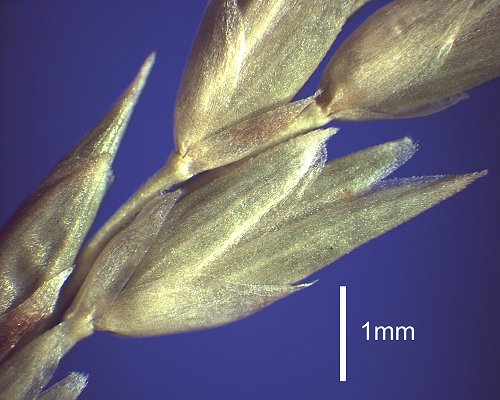Fertile lemma 2.7–4 mm long, keeled, 3–5 -nerved. Palea 1 -nerved. Lodicules present. Anthers 2.
